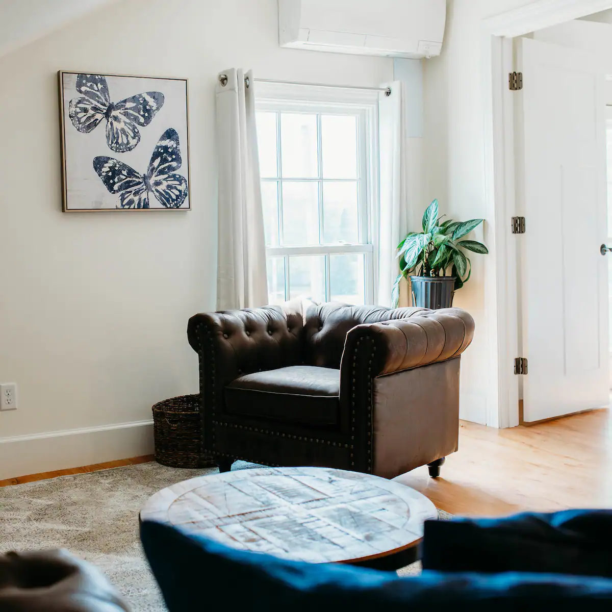 This small sitting room is a great space to host an intimate group or small shower.