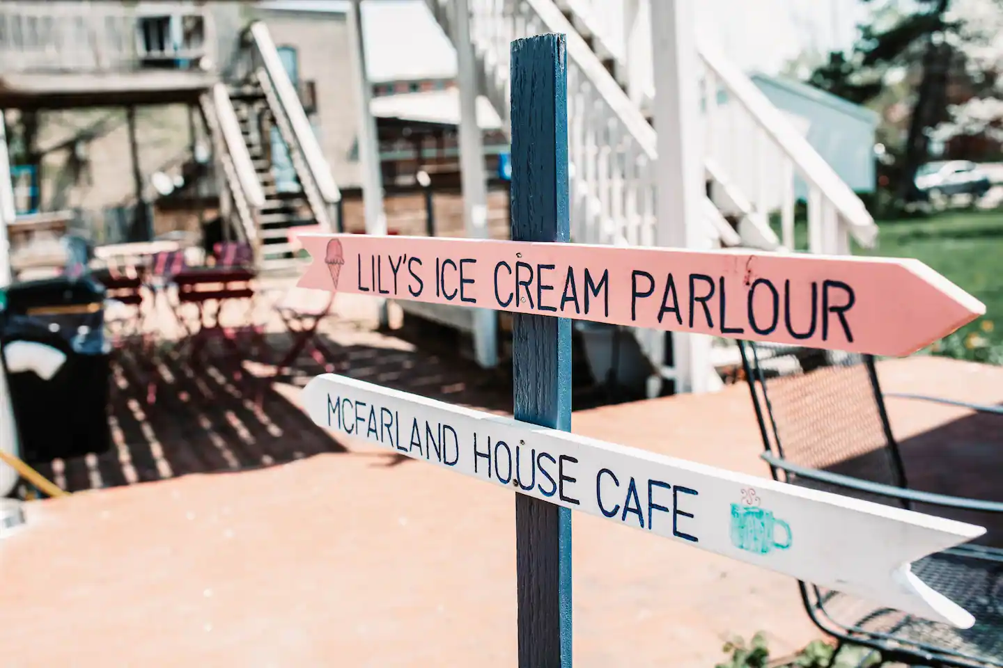 Charming Café Experience in a Historic 1856 House with Garden Seating, Serving Specialty Coffees, Deli Fare, and Homemade Ice Cream.